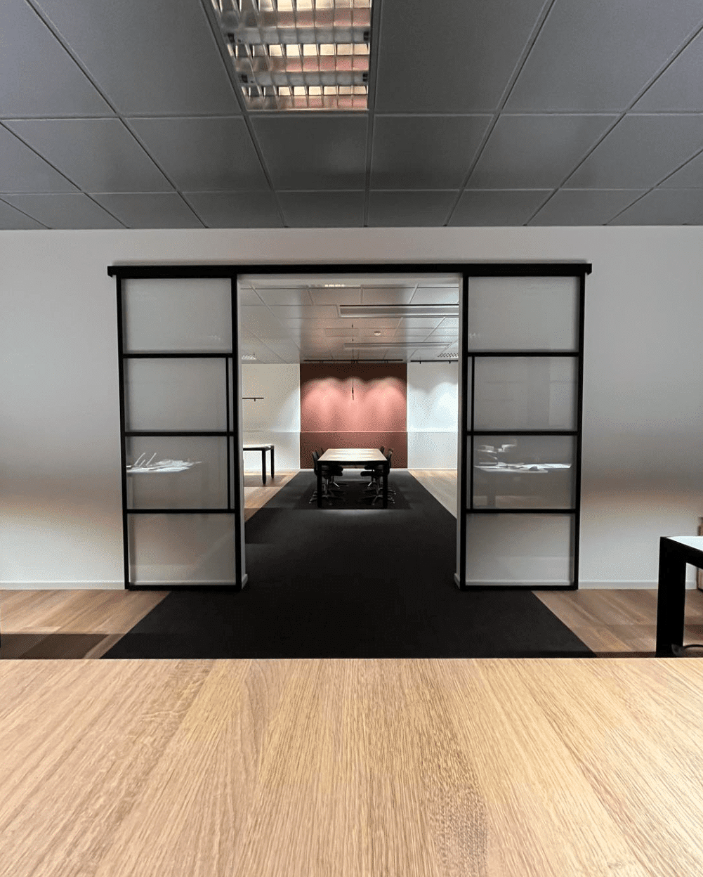 En New Yorker skydedør har en køreskinne øverst, og den kan både have en enkeltdør og dobbeltdør. Hvis du ikke har så meget plads på dit kontor eller i din stue, kan lige netop en skydedør være det oplagte valg for dig. New Yorker skydedøre er lavet på specialmål, og derfor kan de passe ind i en allerede eksisterende væg. Alternativt kan også vælge at kombinere det med vores New Yorker væg for at fuldende New Yorker looket i dit hjem eller virksomhed.